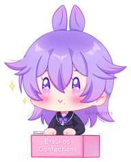 Hi, I go by Etsuko online. I'm a self-taught artist who runs my business, Etsuko's Confections, which I’ve been managing since 2019. I attend cons and sell my work online too. I mainly create fanart of my favorite anime, manga, and games.